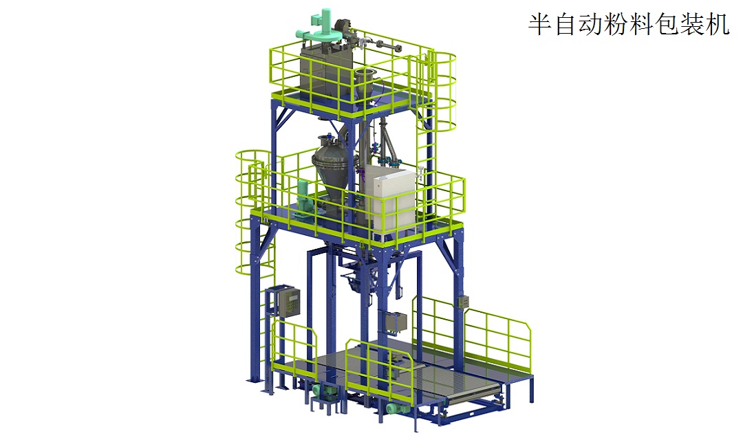 ? 半自動噸包裝機可實現夾袋、吹袋、喂料、計量、排氣、松袋口以及脫鉤等動作的全自動,計量完成后自動送